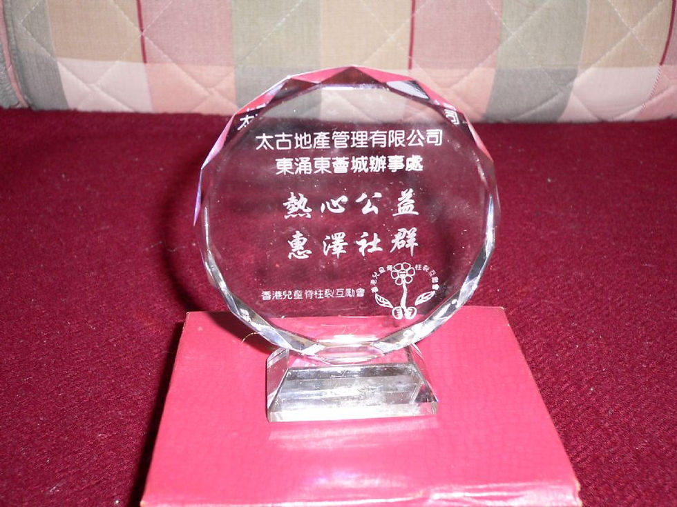 由於太古地產公司於聖誕節期間為本會籌得大額善款,為表謝意,本會由兩名家長義工作為代表,致送紀念品~~